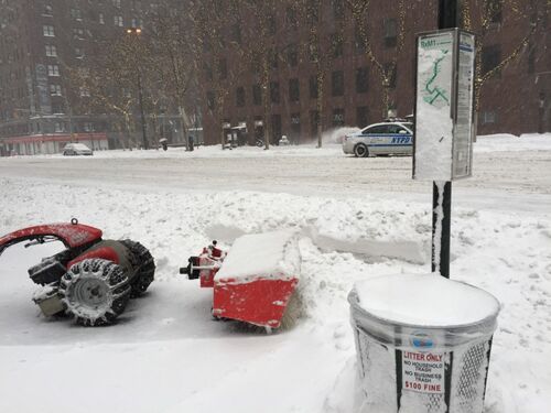 ニューヨークの、昨夜遅くから降り出した雪は、朝10時には、15センチ位積もっていました。 ミッドタウンの3番街沿いのゴミ箱の中に積もった雪。 雪掻き機、シャベル(スコップ)では大変だものね。それにしても、この機械、壊れてる?こんな土曜日は、家の中に…